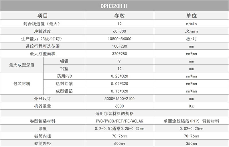 DPH320HⅡ全伺服高速辊板泡罩包装机 参数表